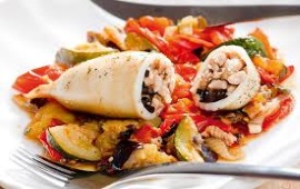 PUNJENE LIGNJE SA GAMBORIMA- ( lignje, gambori, riža)