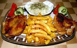 MEŠANO MESO (sv.kare , ražnjić, roštilj kobasica,ćevapi, pleskavica, pil.batak,crni luk) Prilog : pomfrit